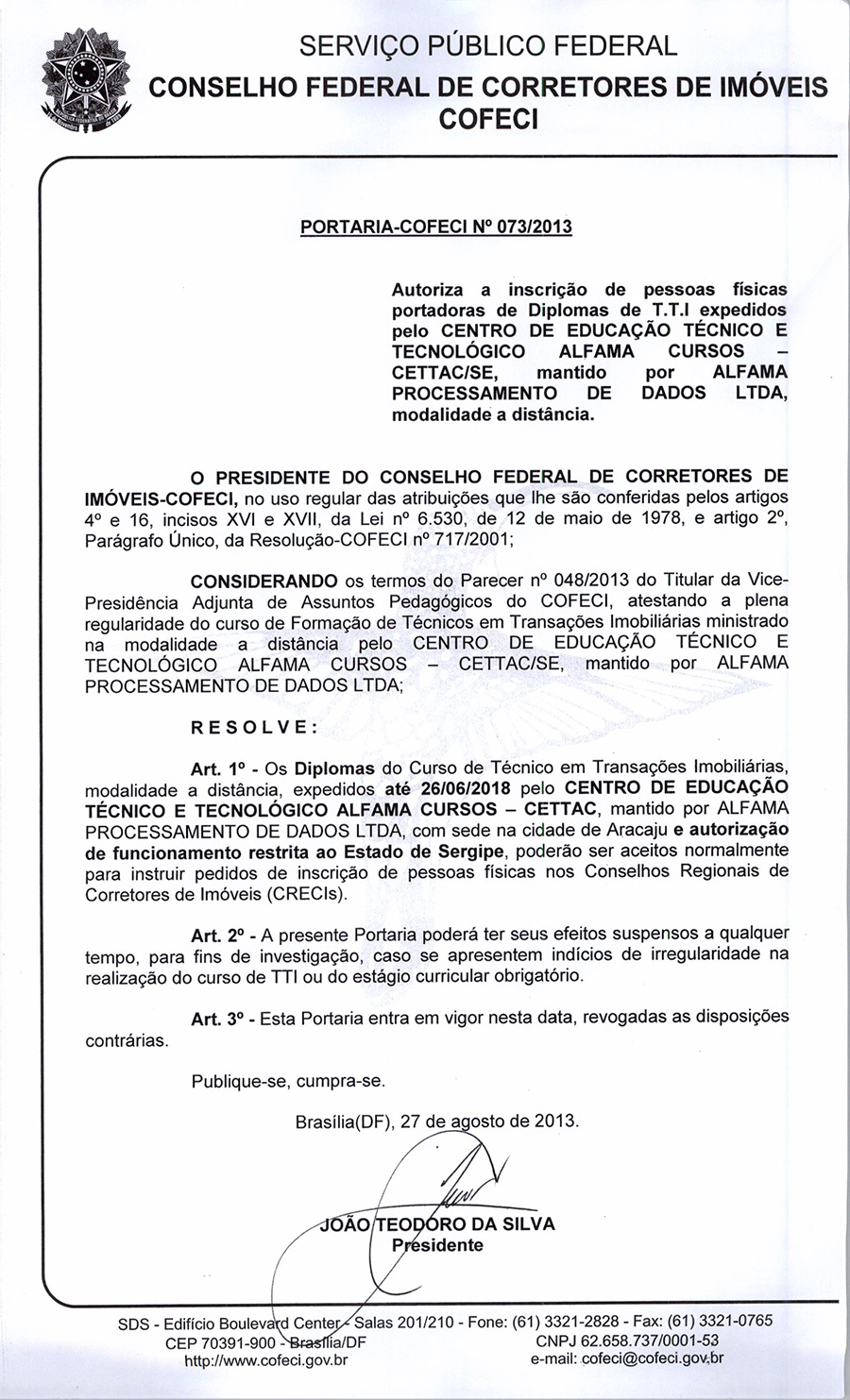 Todos os cursos oferecidos são aprovados pelo Conselho.